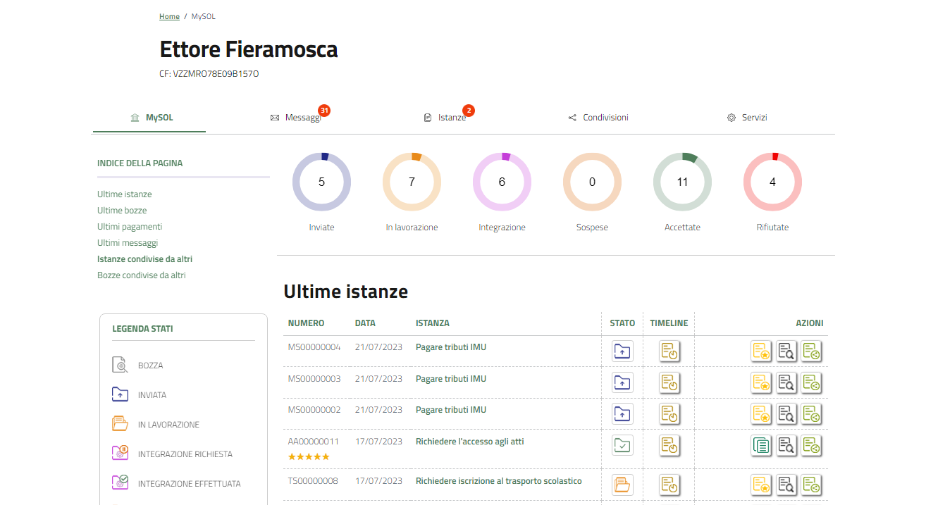 MySol: potrete accedere al vero e proprio sportello delle istanze, dove gestire tutta la vostra attività con l'amministrazione.