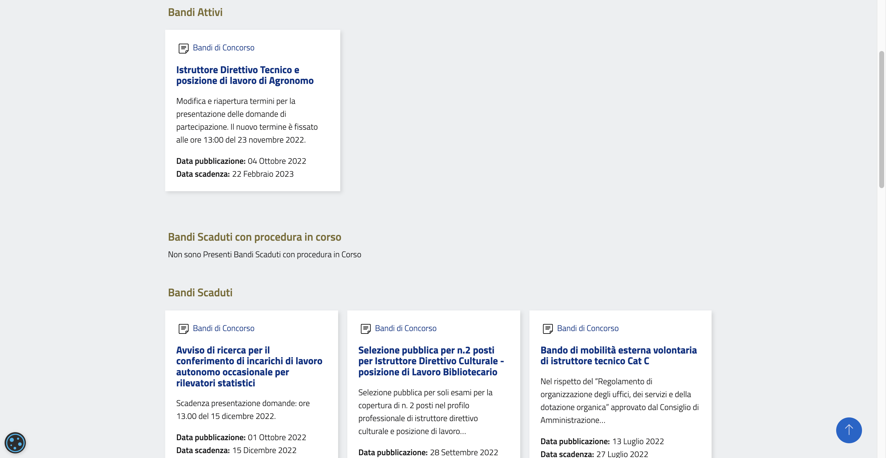 Questa sezione è il richiamo diretto alla sezione dell'Amministrazione Trasparente dove potrete trovare tutti i bandi, in corso e passati, che l'Amministrazione ha bandito.