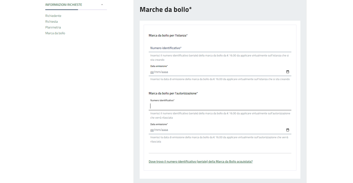 L'istanza prevede il pagamento di due marche da bollo.