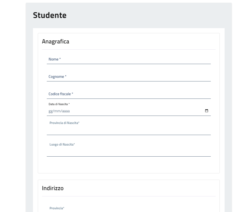 Nel caso si sia genitori/tutori, completare l'anagrafica dello studente.