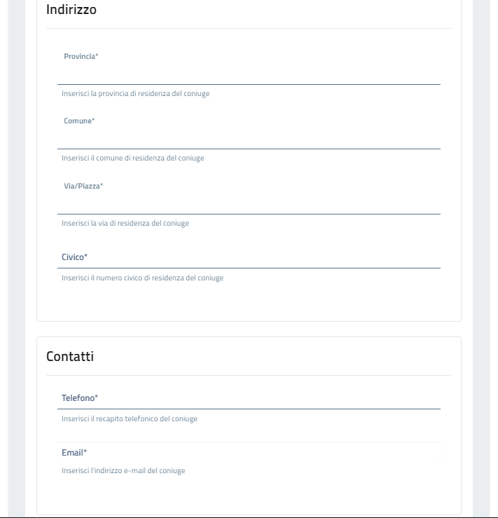 Questa tipologia di pratica non può essere compilata senza prima aver avuto il consenso e la conferma da parte del coniuge.