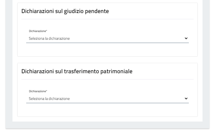 Dal menu a tendina indicare di non essere o essere parte in giudizio pendente.